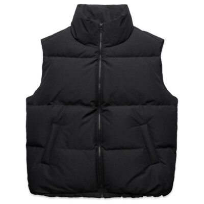 The AS Colour Women's Puffer Vest, a relaxed-fit essential crafted from heavy weight 100% recycled polyester with an 80% down 20% feather fill. Features include a stand collar, YKK zip, and water-resistant construction. Perfect for warmth and sustainability, with 630 Fill Power RDS certified down. Ideal for branding with an invisible lining access zip.