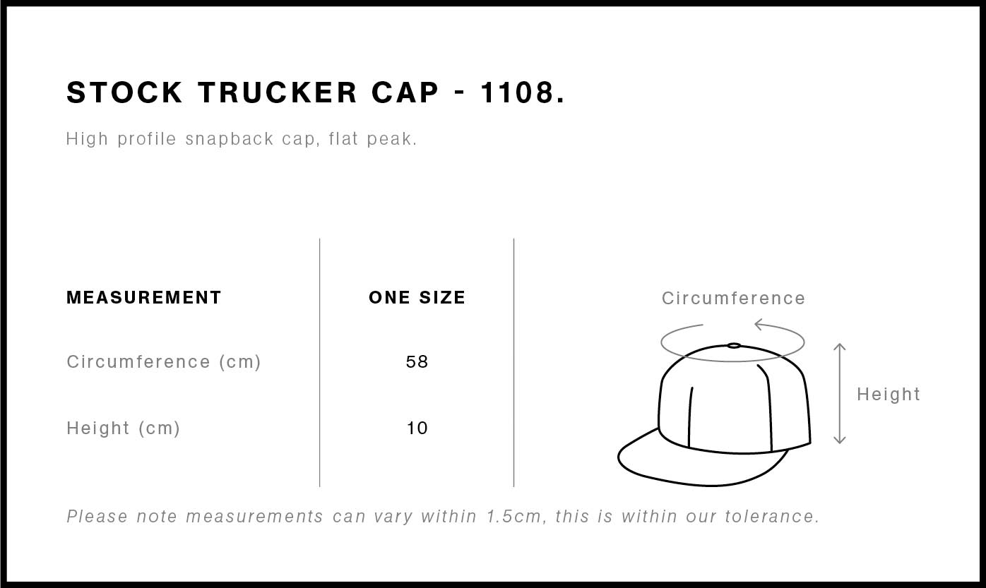 Explore the AS Colour Stock Trucker Cap: A high-profile snapback with a flat peak, featuring a mid-weight construction with a 100% cotton front and peak, paired with a breathable 100% polyester mesh back. Includes a plastic snapback closure, tonal under-peak lining, and tear-out AS Colour label for personalised comfort.