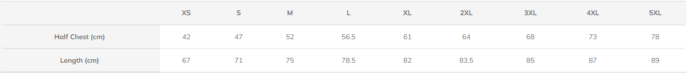 Size Range: XS, S, M, L, XL, 2XL, 3XL, 4XL, 5XL